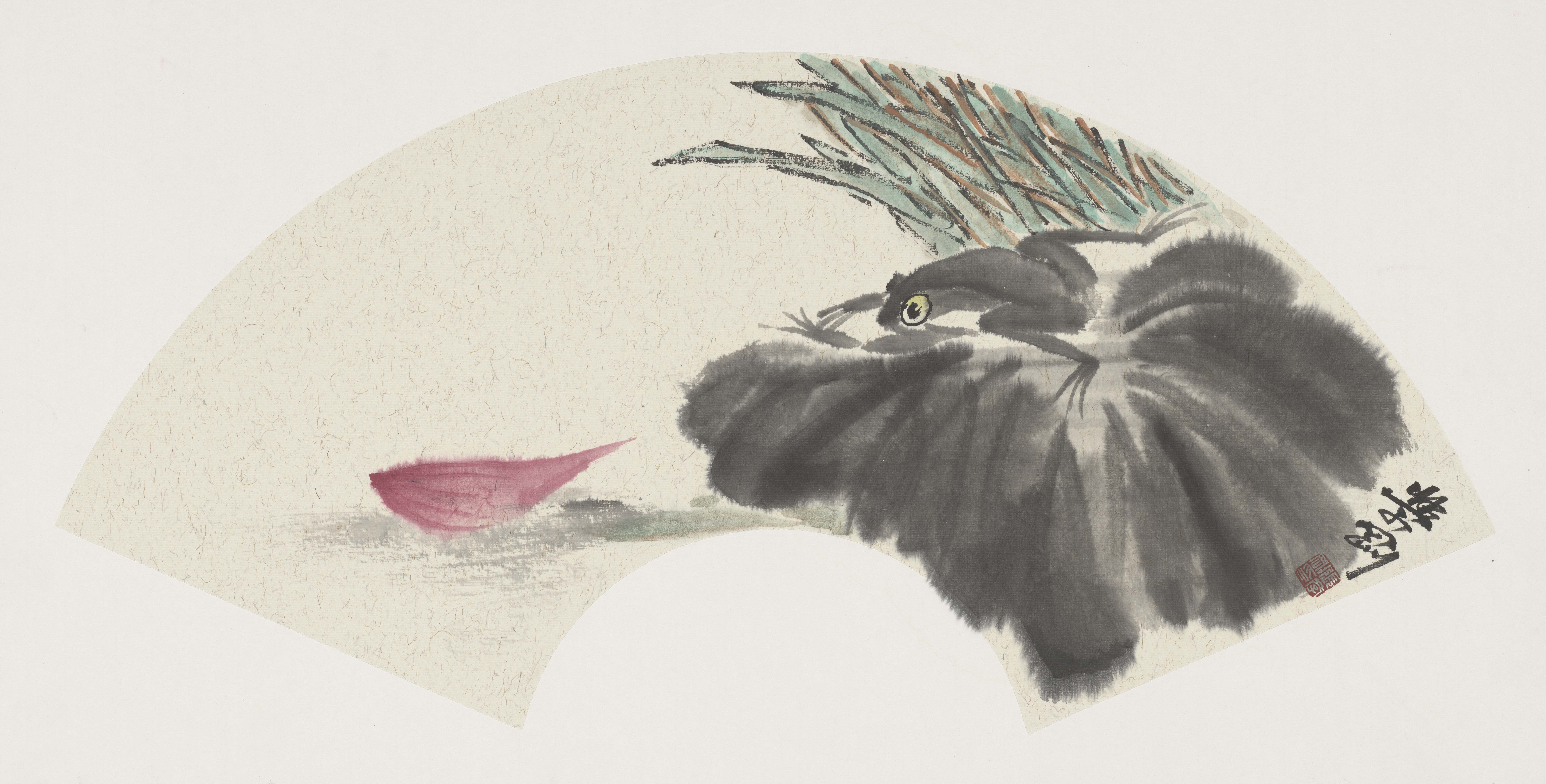 作品名称 张学刚《青蛙荷叶》 作品编号 S29-57 作 者 张学刚 作品规格 33*65 CM