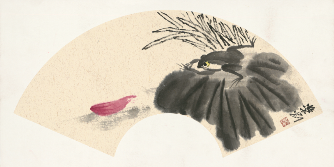 作品名称 张学刚《青蛙荷叶》 作品编号 S29-68 作 者 张学刚 作品规格 33*65 CM