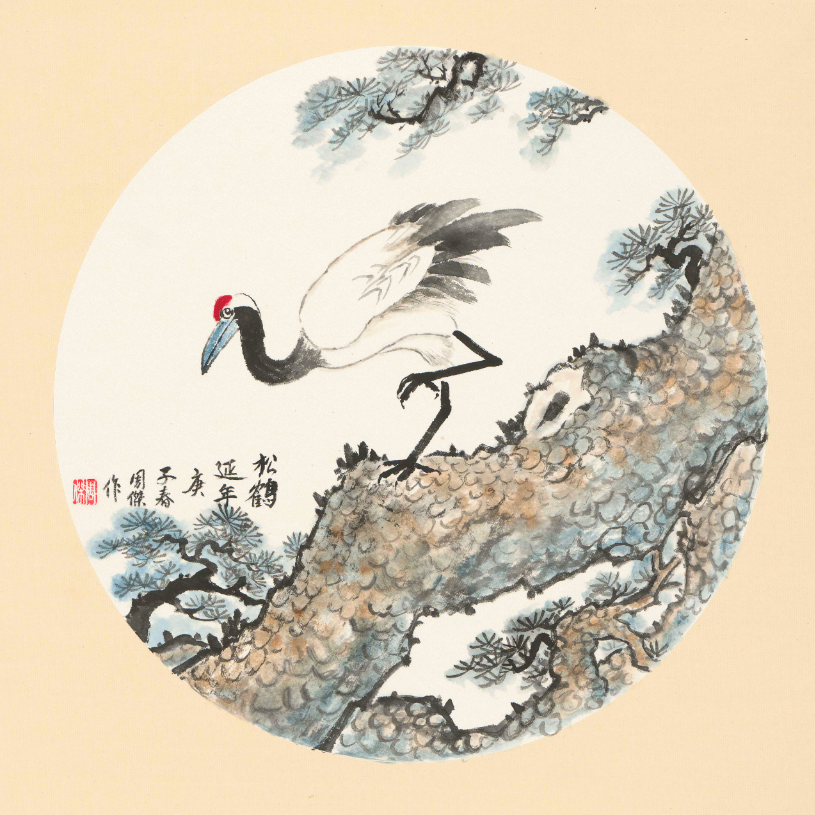 作品名称 周杰《松鹤延年》 作品编号 S45-31 作 者 周杰 作品规格 38*38 CM