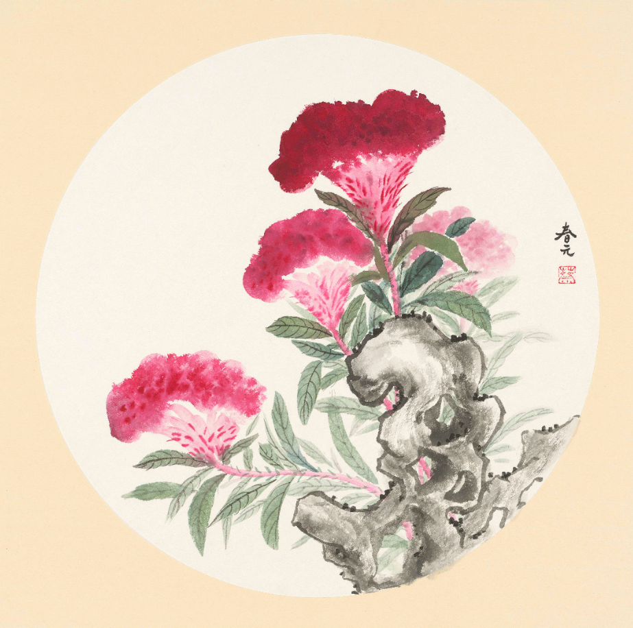 作品名称 蔡春元《鸡冠花》 作品编号 S47-221 作 者 蔡春元 作品规格 38*38 CM