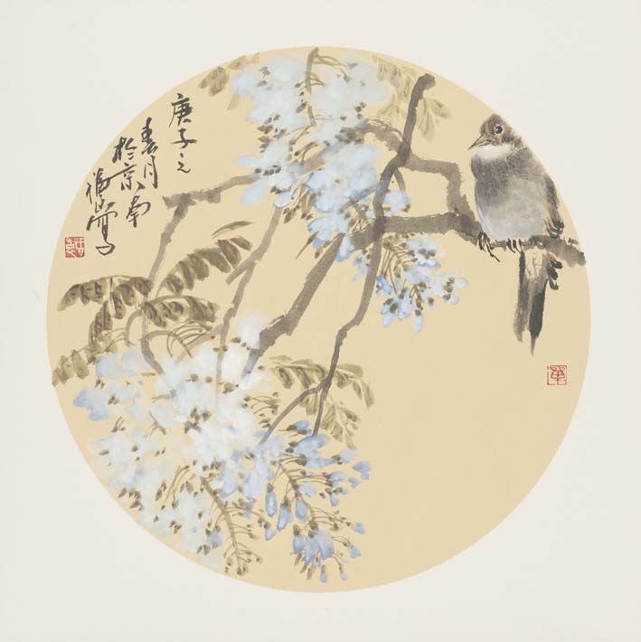作品名称 福良《紫藤小鸟》 作品编号 S70-81 作 者 福良 作品规格 50*50 CM