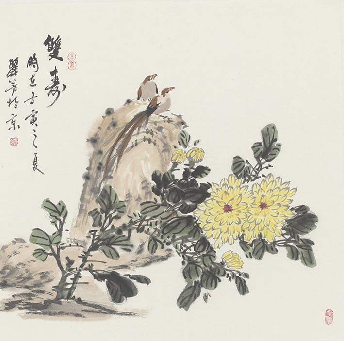 作品名称 李丽芳《双寿》 作品编号 S151-14 作 者 李丽芳 作品规格 68*68 CM